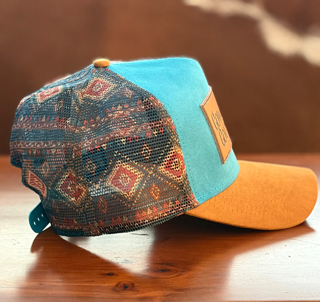 TURQUOISE SKY – Cowgirl Country Suede Trucker Cap