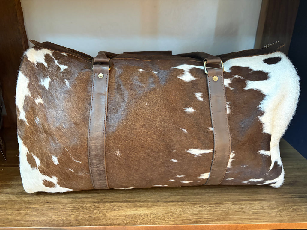 The perfect weekender duffel bag. Handmade cowhide and genuine leather. Featuring removable and adjustable over the shoulder leather strap.